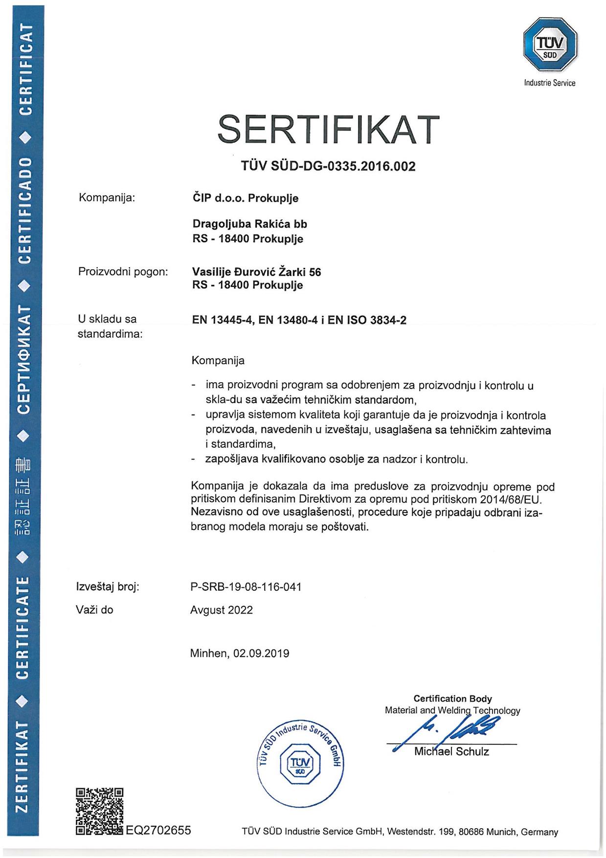Са Политиком интегрисаног система менаџмента, упознати су сви запослени и заинтересоване стране, а за спровођење Политике, одговорно је највише руководство ЧИП д.о.о.