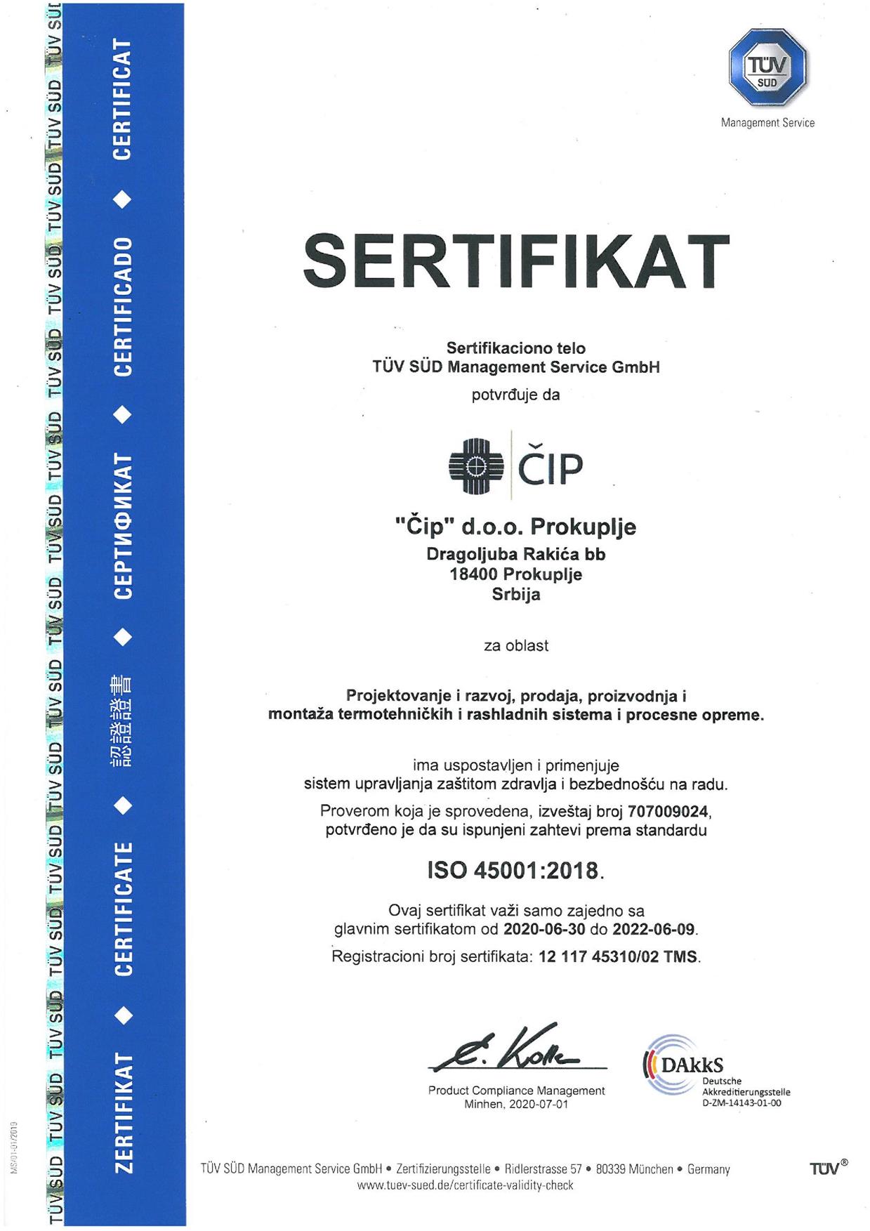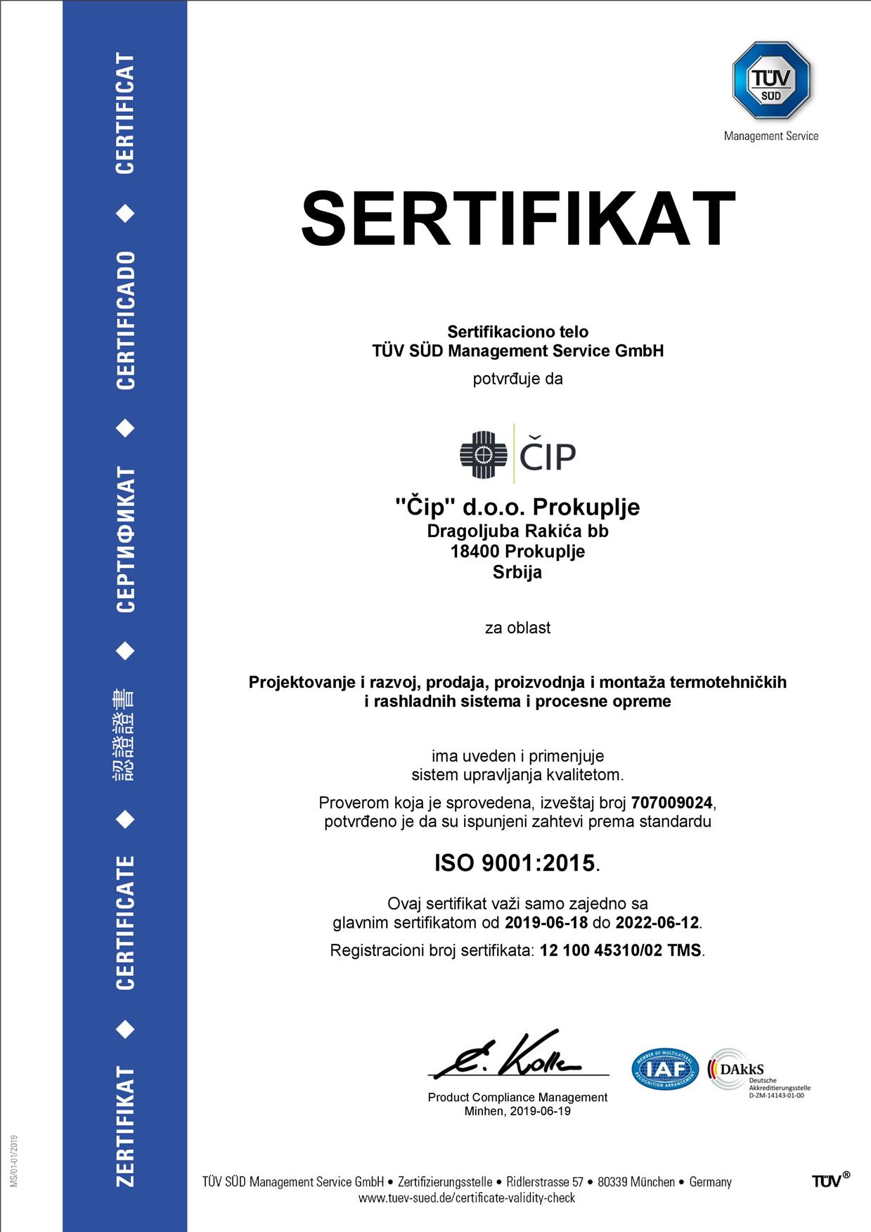 ЧИП д.о.о је приватно предузеће за пројектовање, монтажу и производњу термотехничких инсталација и постројења (грејање, хлађење, климатизација и вентилација) које утврђује Политику интегрисаног система менаџмента ради обезбеђења услова да производи и услуге испуњавају исказане и неисказане захтеве корисника и важећих закона, стандарда и других прописа, кроз функционисање интегрисаног система менаџмента (система менаџмента квалитетом, система менаџмента животном средином и система менаџмента безбедношћу и здрављем на раду).
